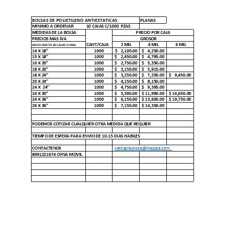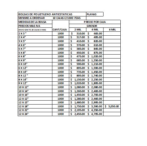 Bolsas de Polietileno Antiestáticas de 2,4 Y 6 MIL Categoría: Bolsas de blindaje Estático y Bolsas Electrónicas
