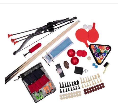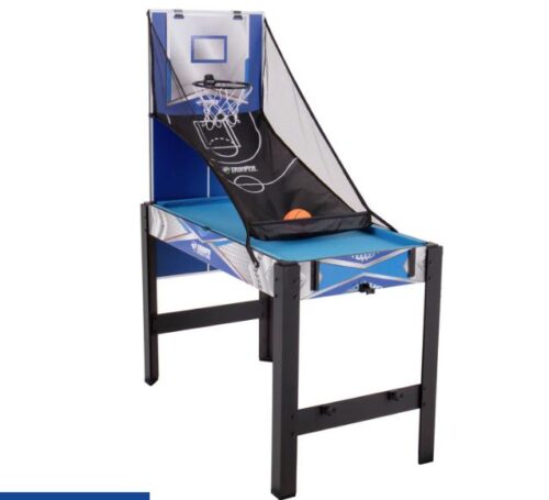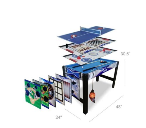 - TRECE JUEGOS EN UNO: incluye baloncesto, tenis de mesa, billar, hockey de empuje, fútbol y béisbol de lanzamiento, tres en raya y lanzamiento de bolsas de frijoles.